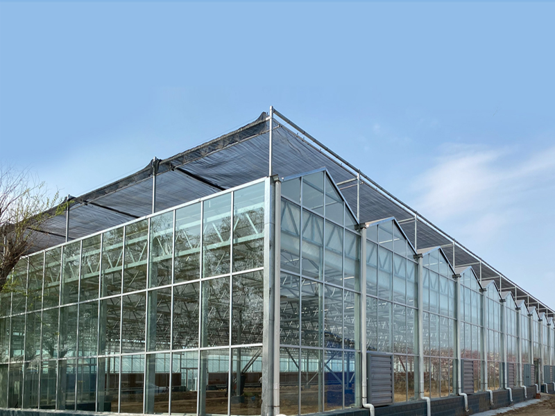 玻璃溫室指以玻璃作采光材料的溫室,屬于溫室大棚的一種 ,在栽培設施中,玻璃溫室作為使用壽命最長的一種形式, 適合于多種地區和各種氣候條件下使用。行業內以跨度與開間的尺寸大小分為不的建設型號,又以不同的使用方式分為:蔬菜玻璃溫室、花卉玻璃溫室、育苗玻璃溫室、生態玻璃溫室、科研玻璃溫室、立體玻璃溫室、異形玻璃溫室、休閑玻璃溫室、智能玻璃溫室等等。其面積與使用方式可有溫室主自由調配,最小的有庭院休閑型的,大的高度可達10米以上,跨度可達16米,開間最大可達10米,智能程度可達到一鍵控制 。玻璃溫室的冬季采暖問題可采用多種供暖方式,其能耗費用居中,大都能接受。